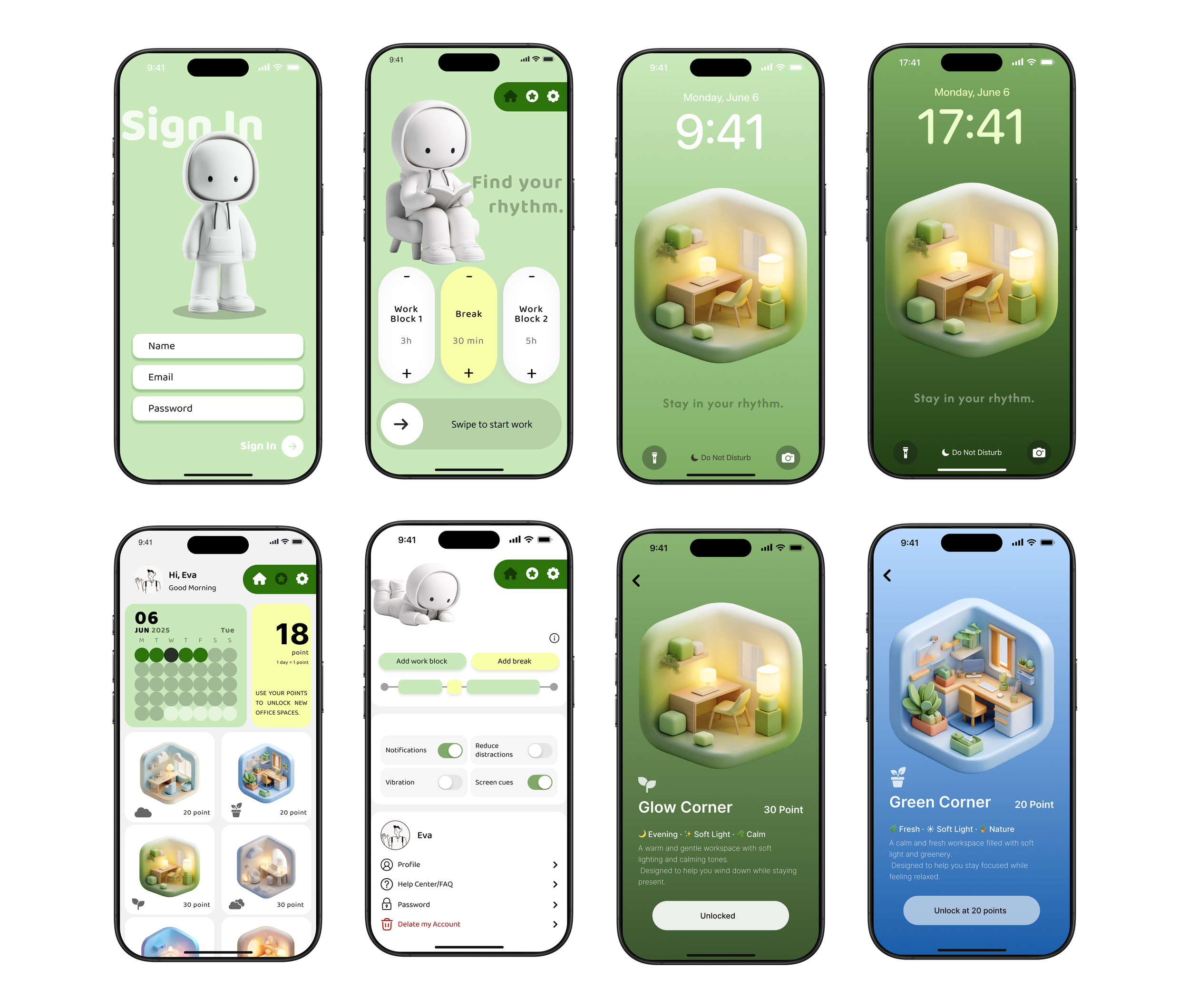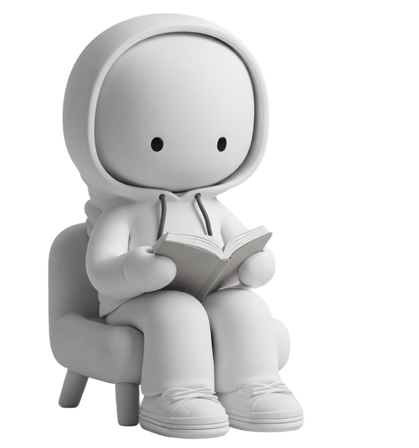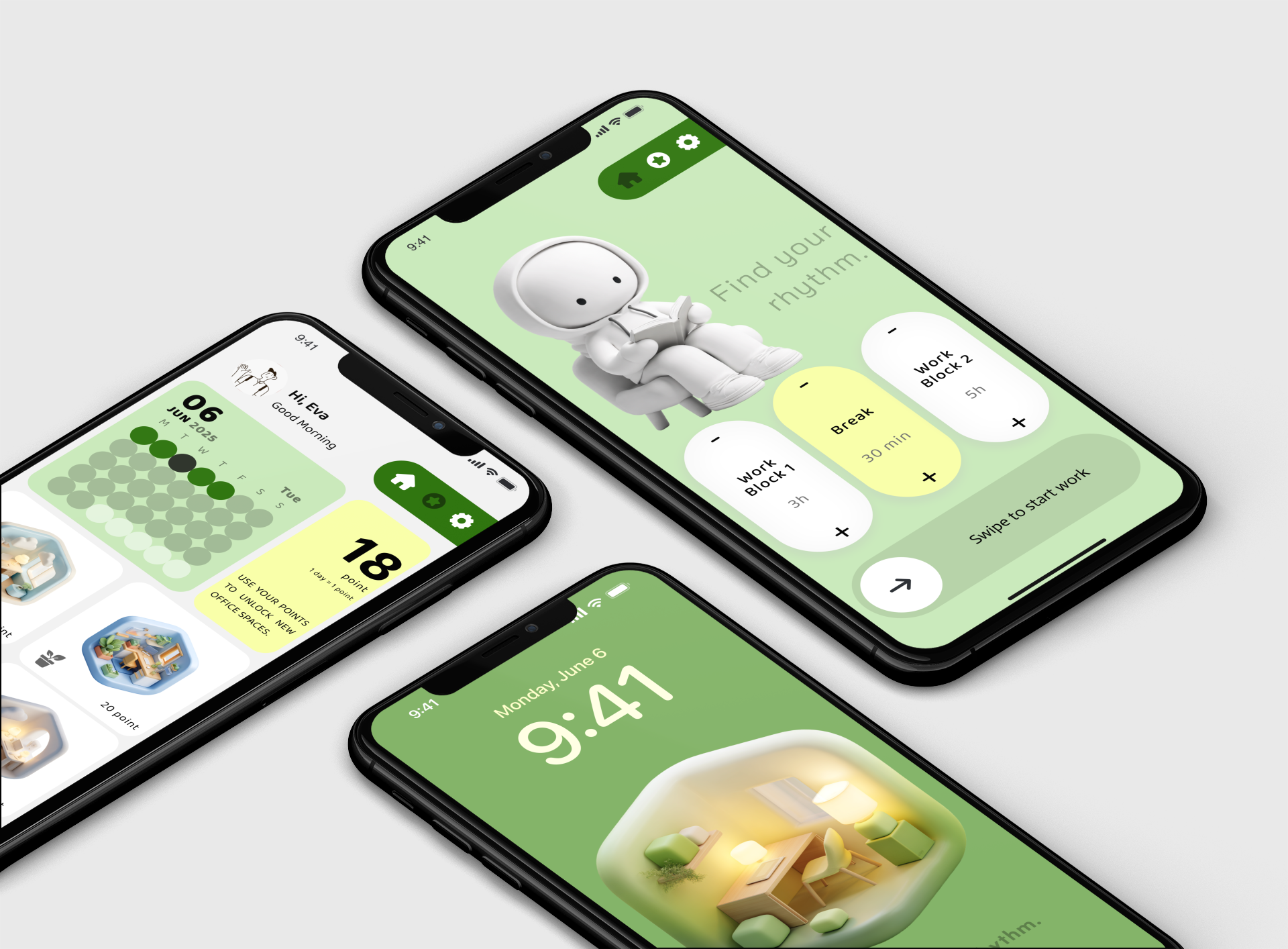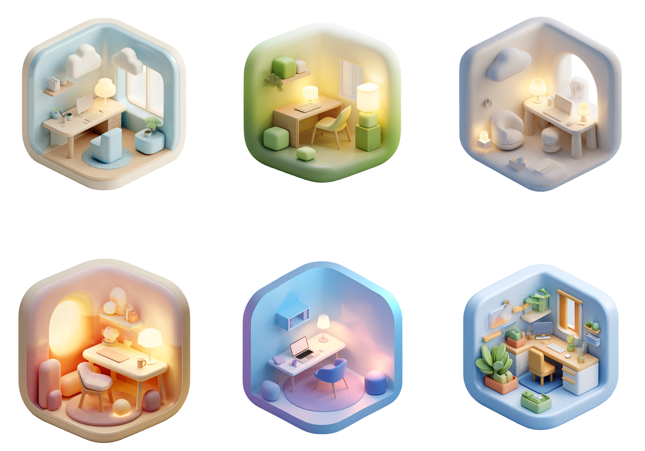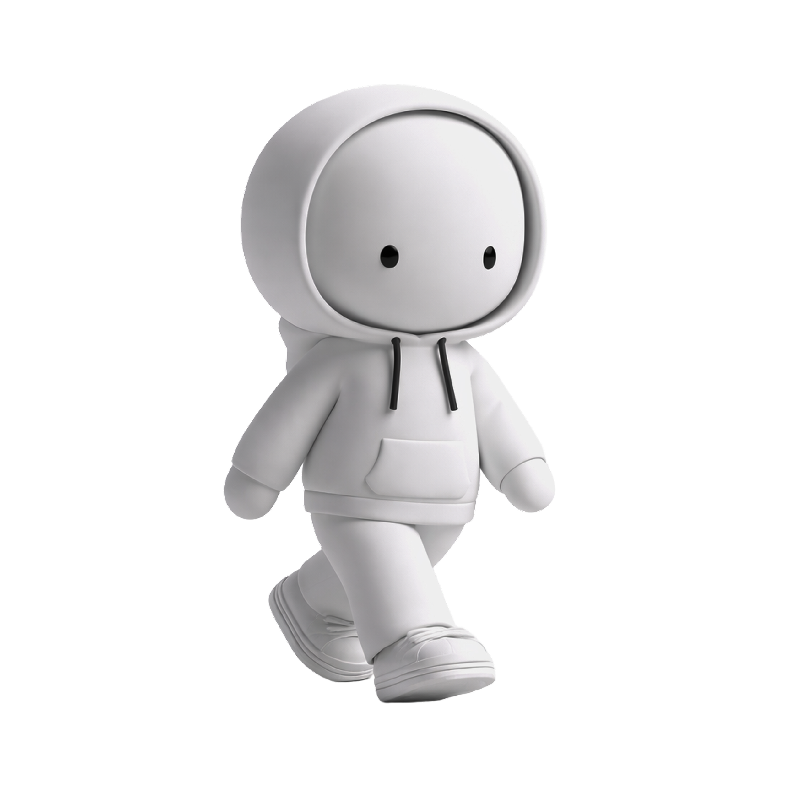 Designed with soft 3D forms, rounded edges, and minimal facial features,